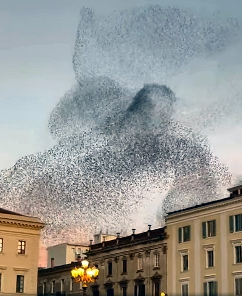 unha boa bandada que dorme nos plátanos que quedaron. Son varios miles.