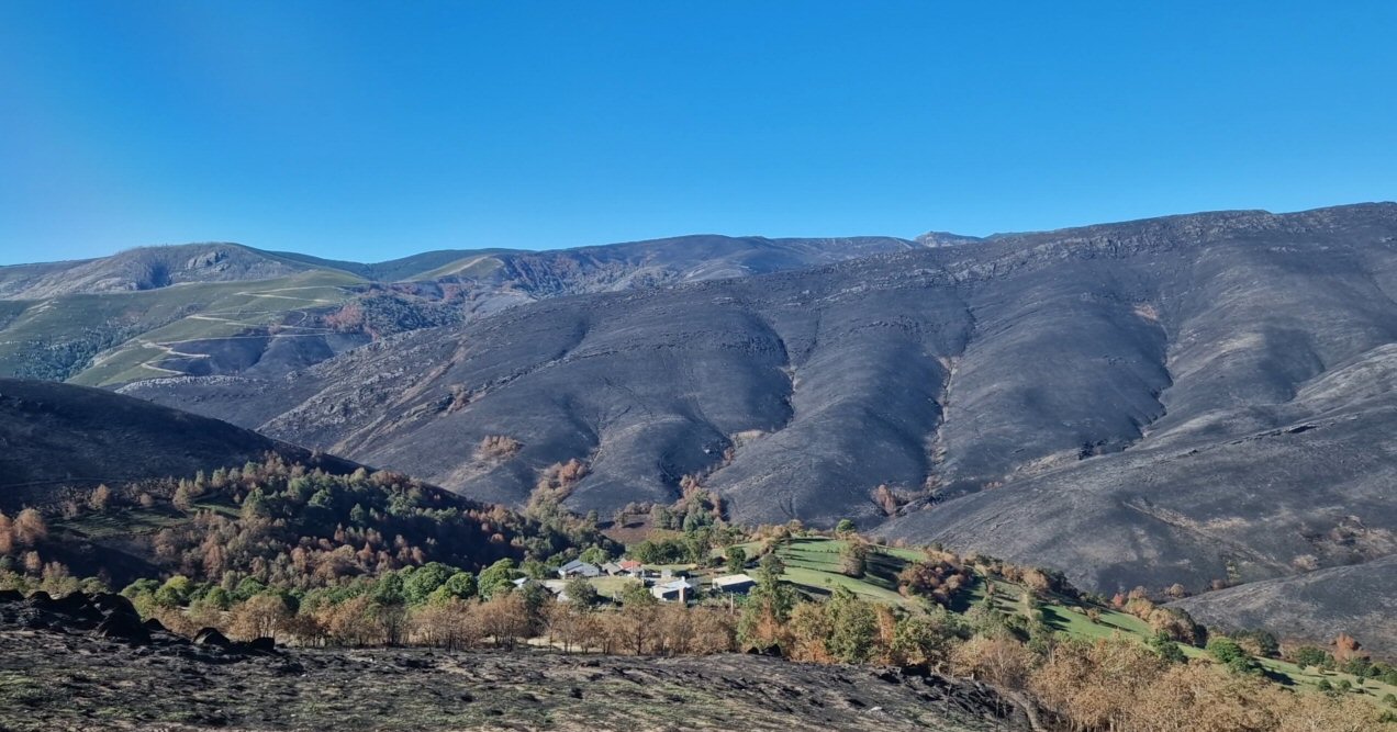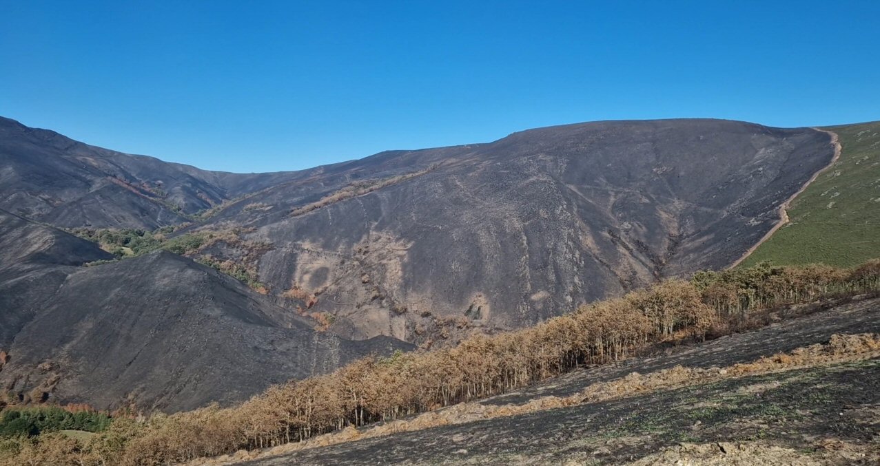 Ese cortafuegos que se ve na montaña de enfrente salvou, seguramente, a outros pueblos de Chandrexa de Queixa, como Sta. Cruz e Casteleiriña de que arderan.