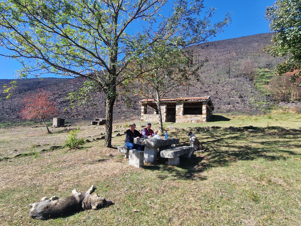 As doce tomamos un picoteo nesta área recreativa "O Plantío".