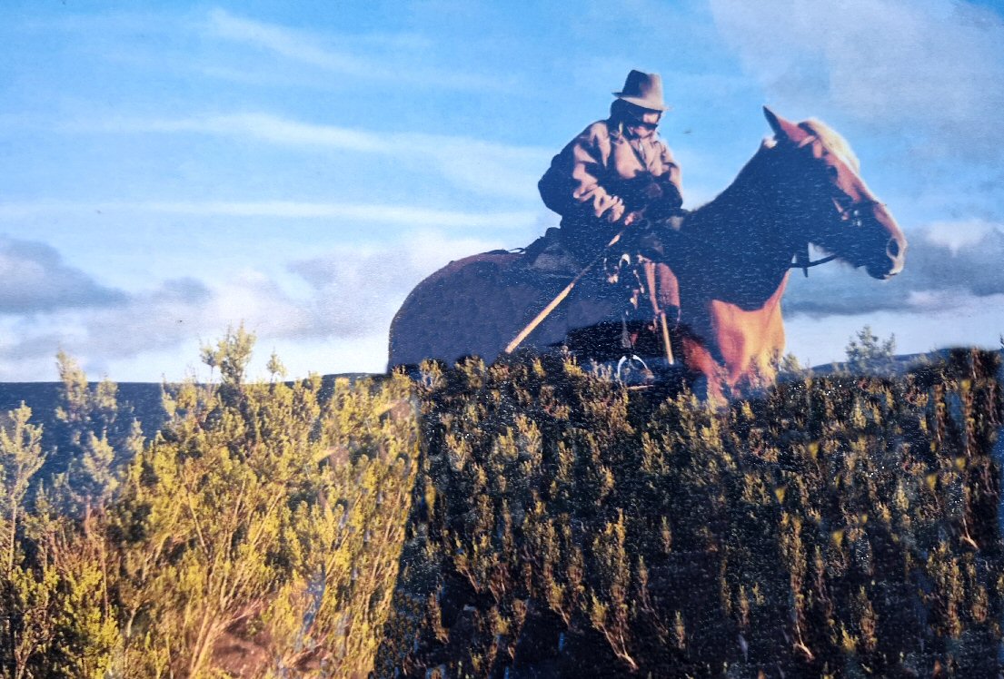 Tamén sacou esta outra. Moi boa fotografía pero a miña copia mala...O Sr. Enrique montado da súa egua. Parece Robert Redford, na película sensacional Las aventuras de Jeremiah Johnson (1972)