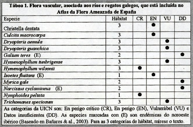 un resumen das especies ameazadas nos ríos galegos nas súas zonas