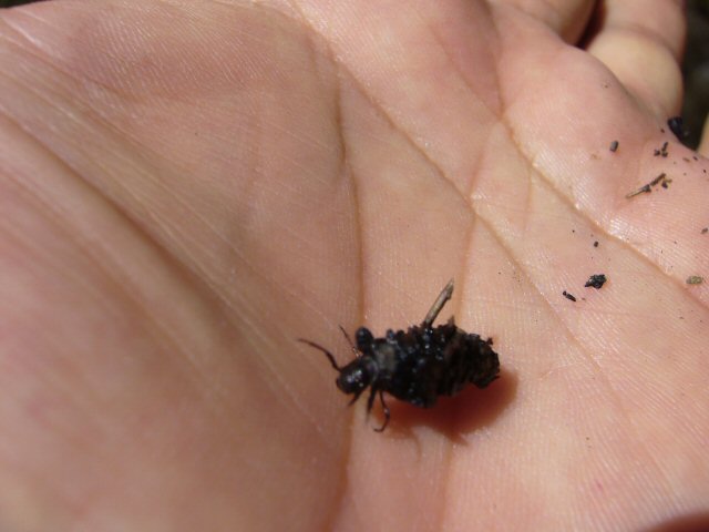 O casullo que é unha larva que vive no fondo do río, atópase, si o