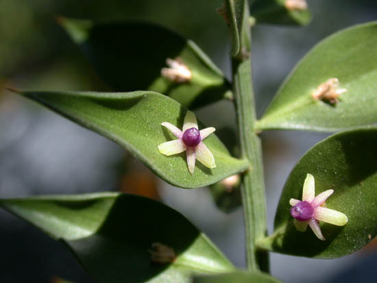 En castelán chámase rusco, brusco, tamén acebo menor e arrayán silvestre.