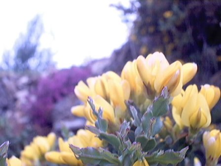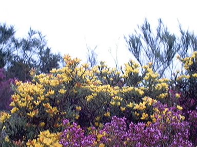 As carqueixas son as amarelas. Os carrascos son os de cor violeta e no fondo vense xestas normais.