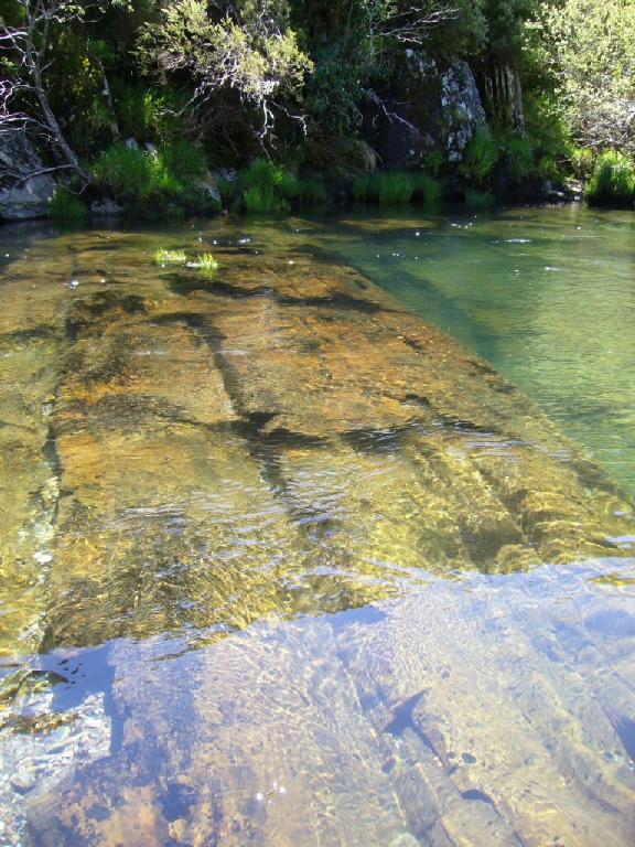 que a pedra atravesa o río e son moi resbaladizas.